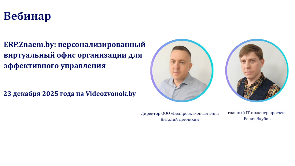 Приглашаем на практический онлайн-вебинар "ERP.Znaem.by: персонализированный виртуальный офис организации для эффективного управления".